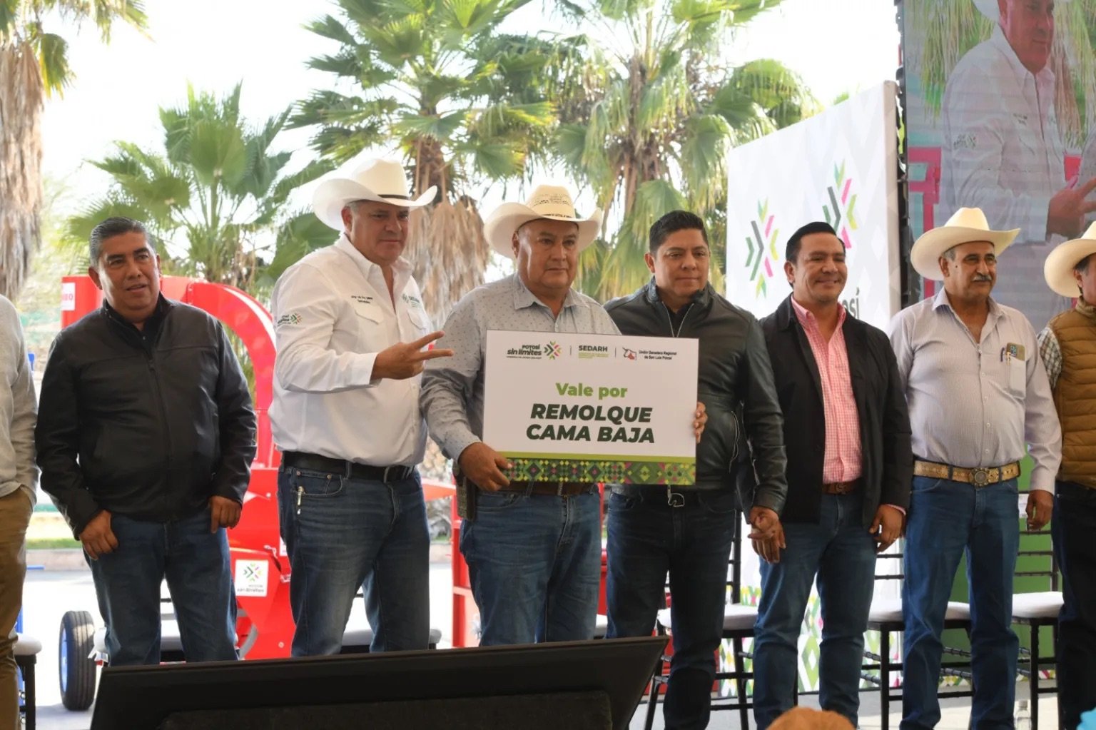 El Gobernador Ricardo Gallardo Cardona encabezó este lunes en la comunidad de Palma de la Cruz, en Soledad de Graciano Sánchez, la segunda entrega de equipamiento e implementos agrícolas del programa emergente de apoyo a la ganadería, impulsado por la Secretaría de Desarrollo Agropecuario y Recursos Hidráulicos (SEDARH). La acción forma parte de la estrategia estatal para fortalecer al sector rural ante los retos climáticos y económicos.