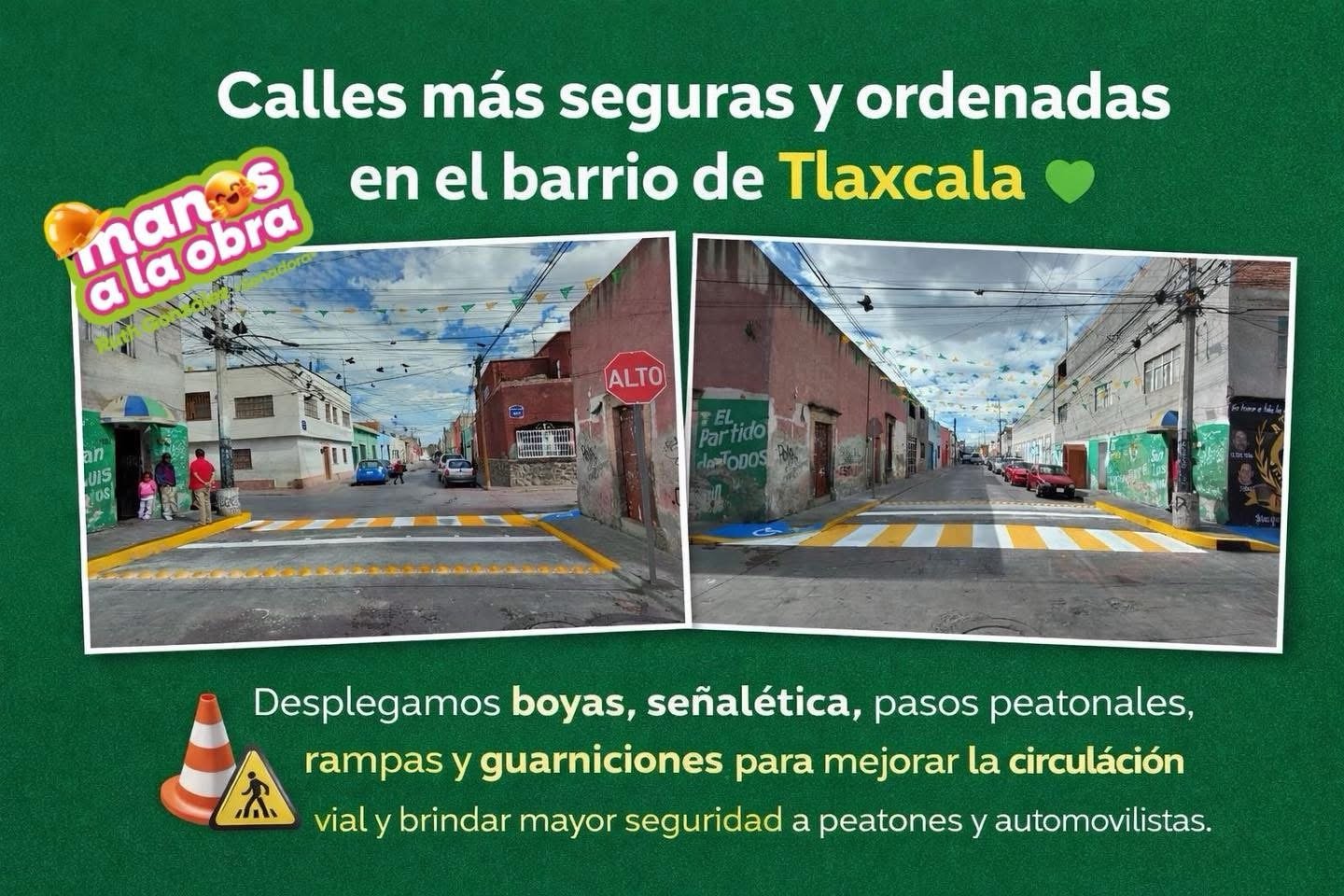 El proceso de transformación urbana que se vive en la capital potosina comienza a reflejarse en calles más seguras, ordenadas y funcionales, como ocurre en el tradicional barrio de Tlaxcala, donde se llevaron a cabo acciones integrales para mejorar la movilidad y la seguridad vial.
