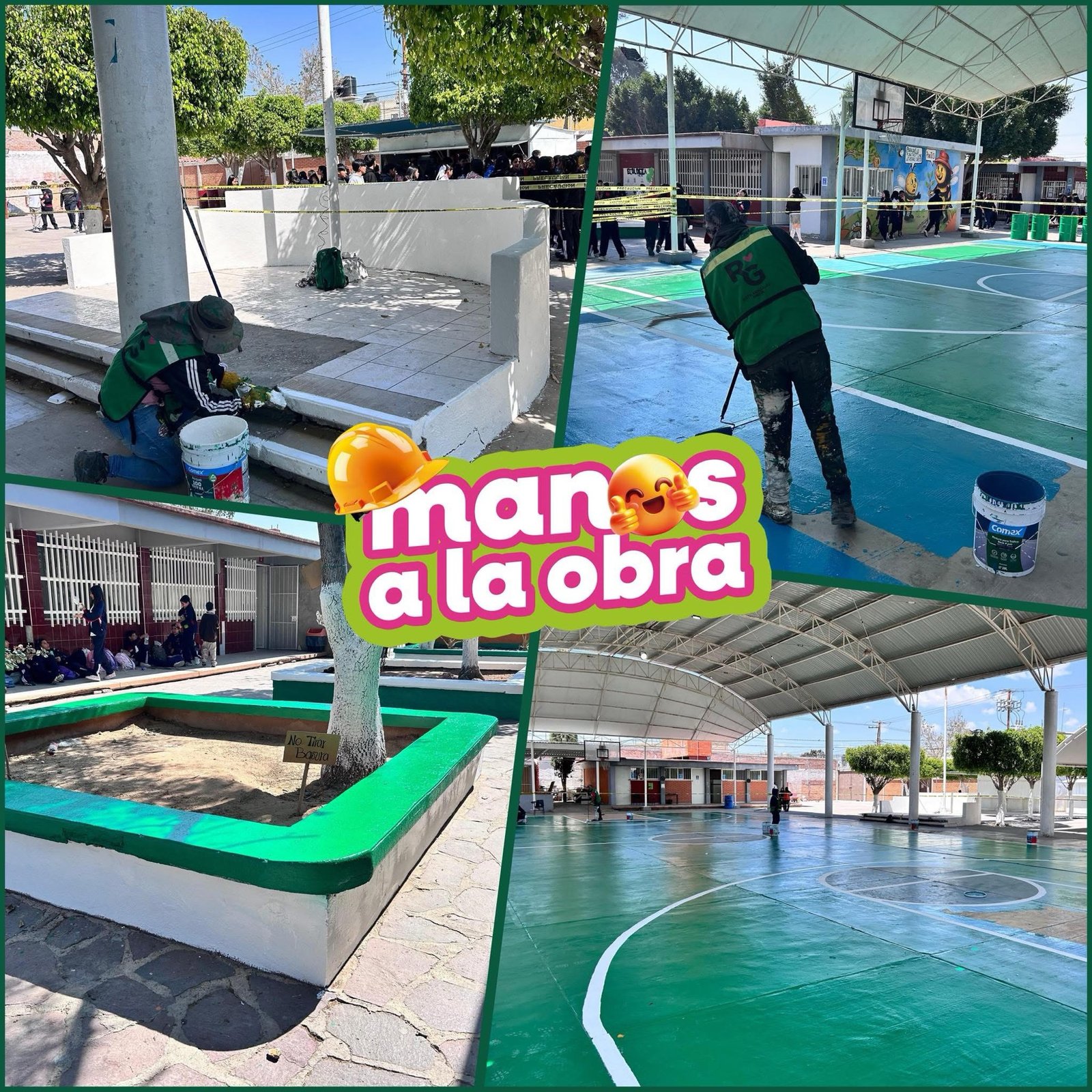 Durante esta jornada, las labores se centraron en la aplicación de pintura en jardineras, canchas deportivas y mobiliario escolar, lo que contribuye no solo a mejorar la imagen de la institución, sino también a generar un ambiente más agradable para el aprendizaje. Asimismo, se realizó la donación de tambos para basura, reforzando la cultura de limpieza y el cuidado del entorno.